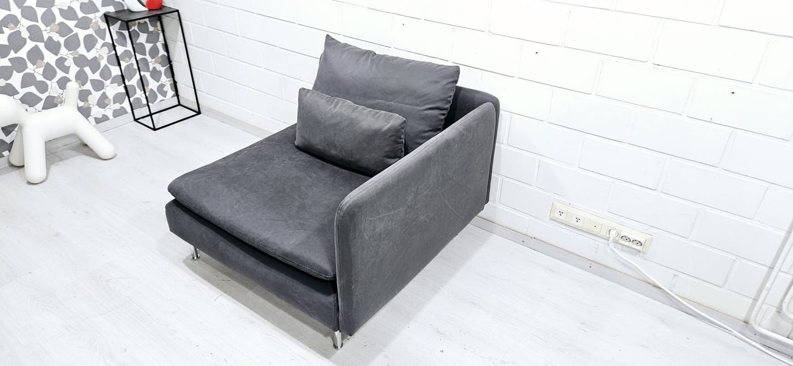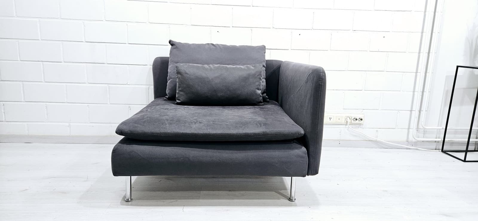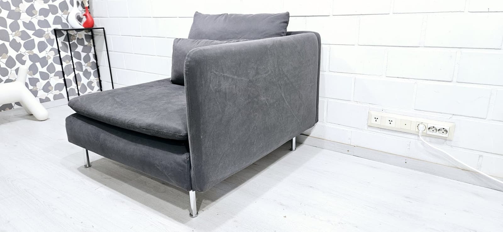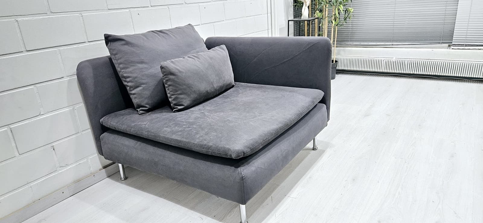 Sohva on hyvässä kunnossa. Päälliset juuri pesty. Päälliset ovat irrotettavat runko myöden. Väri Samsta tummanharmaa. Mitat Leveys 92 cm, syvyys 98 cm. Kivijalkaliikkeemme on auki VAIN sopimuksen mukaan. Halutessasi viemme vanhat huonekalusi pois korvausta vastaan. Ilmainen kuljetus alueille: Helsinki, Espoo, Vantaa, Kerava, Järvenpää, Tuusula. Kuljetukset myös muualle edullisesti, kysy rohkeasti hintaa! Ilmainen kuljetus free delivery sohva divaanisohva kulmasohva moduulisohva sofa cornersofa modularsofa delivery kulmadivaanisohva corner sofa tuonti