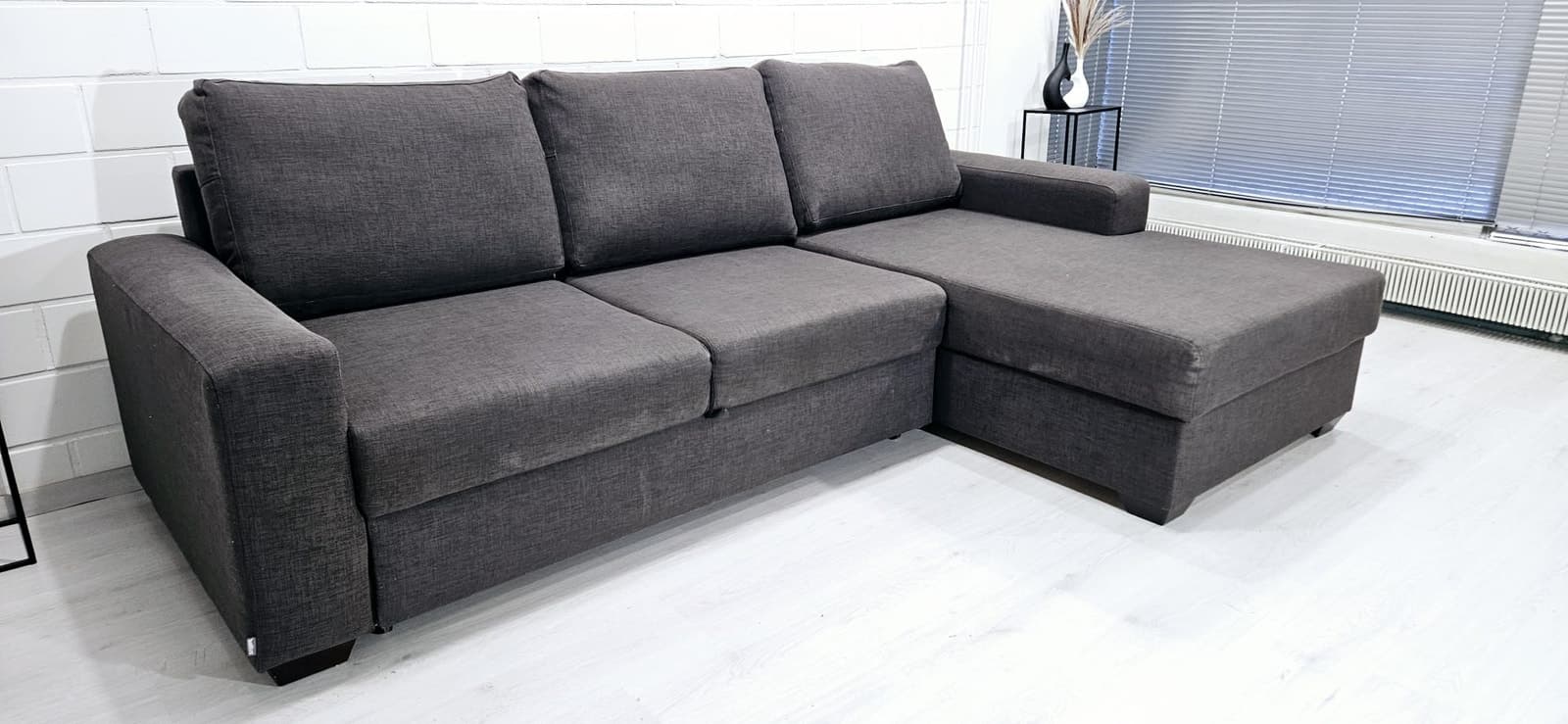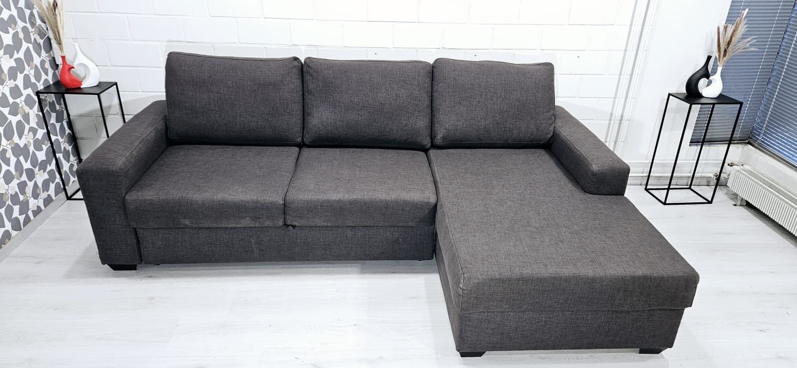 Sohva on hyväkuntoinen. Savuttomasta asunnosta ( ei tupakoitu sisällä). Divaanin puolta ei voi vaihtaa. Päälliset ovat irroitettavat. Leveys 250cm syvyys 95cm divaani 160cm vuode 140x210cm. Kivijalkaliikkeemme on auki VAIN sopimuksen mukaan. Halutessasi viemme vanhat huonekalusi pois korvausta vastaan. Ilmainen kuljetus alueille: Helsinki, Espoo, Vantaa, Kerava, Järvenpää, Tuusula. Kuljetukset myös muualle edullisesti, kysy rohkeasti hintaa! Ilmainen kuljetus free delivery sohva divaanisohva kulmasohva moduulisohva sofa cornersofa modularsofa delivery kulmadivaanisohva corner sofa tuonti