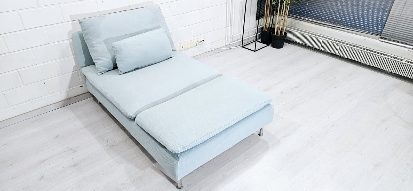 Sohva on hyvä kuntoinen. Päälliset juuri pesty. Päälliset ovat irrotettavat runko myöden. Mitat Leveys 95cm, syvyys 150cm. Väri vaalea turkoosi Kivijalkaliikkeemme on auki VAIN sopimuksen mukaan. Halutessasi viemme vanhat huonekalusi pois korvausta vastaan. Ilmainen kuljetus alueille: Helsinki, Espoo, Vantaa, Kerava, Järvenpää, Tuusula. Kuljetukset myös muualle edullisesti, kysy rohkeasti hintaa! Ilmainen kuljetus free delivery sohva divaanisohva kulmasohva moduulisohva sofa cornersofa modularsofa delivery kulmadivaanisohva corner sofa tuonti
