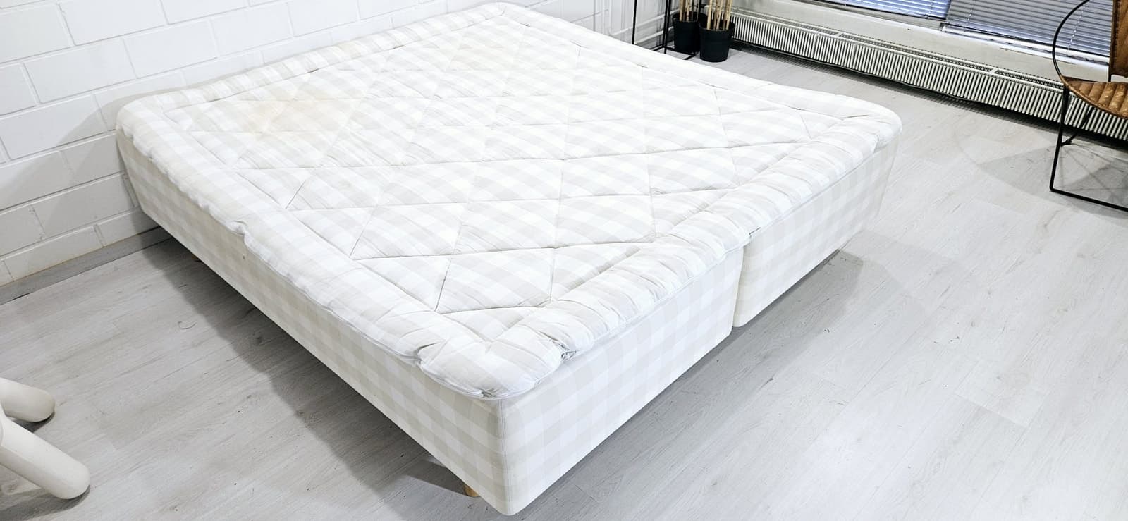 Hyvässä kunnosa oleva Hästens parisänky. Savuttomasta asunnosta ( ei tupakoitu sisällä). Mitat Leveys 180cm, pituus 200cm, korkeus 53cm. Kovuus: Molemmat medium. Kivijalkaliikkeemme on auki VAIN sopimuksen mukaan. Halutessasi viemme vanhat huonekalusi pois korvausta vastaan. Ilmainen kuljetus alueille: Helsinki, Espoo, Vantaa, Kerava, Järvenpää, Tuusula. Kuljetukset myös muualle edullisesti, kysy rohkeasti hintaa! Ilmainen kuljetus free delivery delivery toimitus sängyt parisängyt parisänky yhdenhengensänky runkopatja runkopatjat jenkkisänky jenkkisängyt moottorisänky petauspatja hästens hästensin hästensit , bed doublebed singlebed, framemattress yankeebed motorizedbed mattress Parivuode parisänky peti
